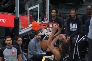 这可不多见!克拉克斯顿背身妙传 杰明溜底线双手暴扣空篮!
